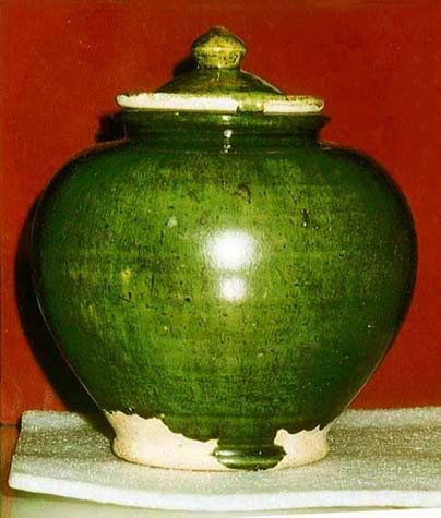 green glazed pottery jar and cover, of excellent form and color.