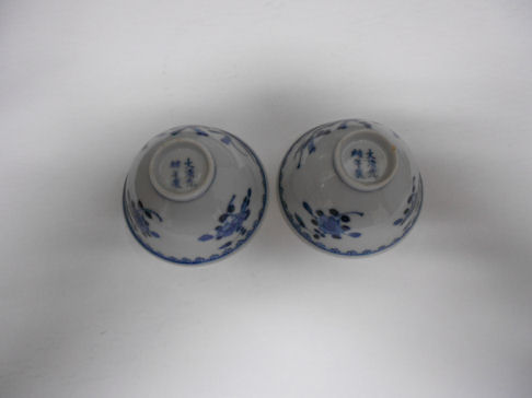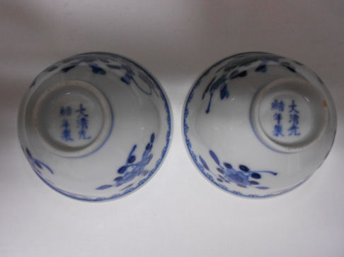 Extremely fine PAIR of mini blue and white porcelain bowls KUANGSHU mark & of the period 2 1/2" D.